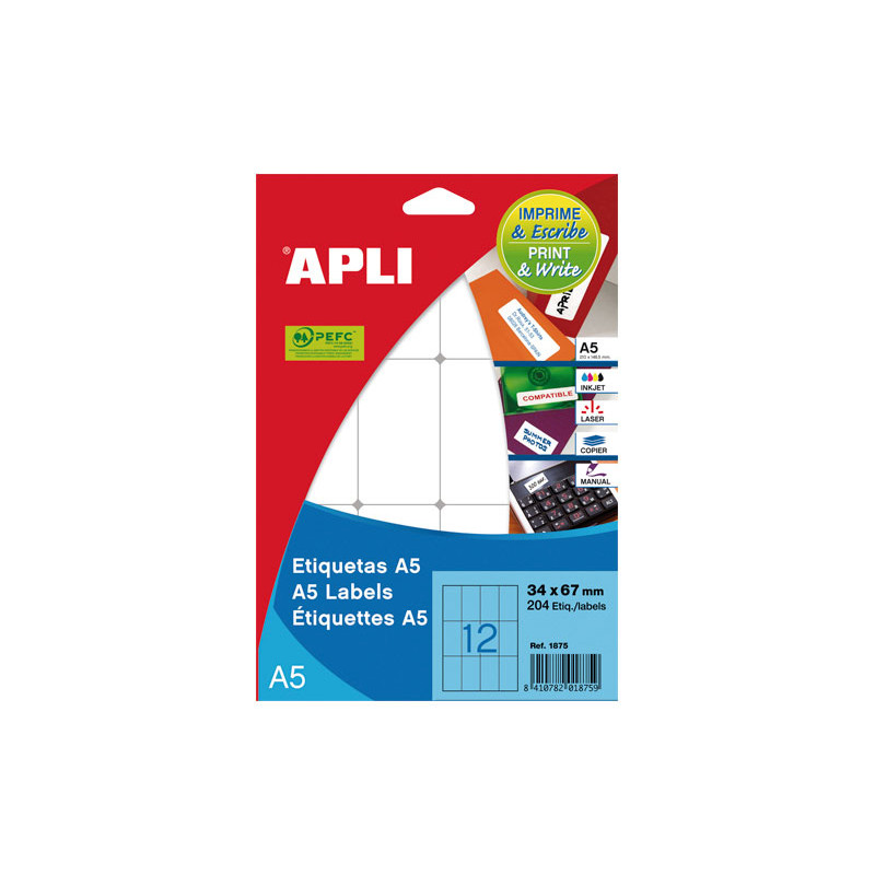 - Etiquetas autoadhesivas – Impresión en impresoras inkjet, láser y fotocopiadoras – Tipo de adhesivo: Removibles – Medidas: 97 x 42,4mm – Cantos: Rectos